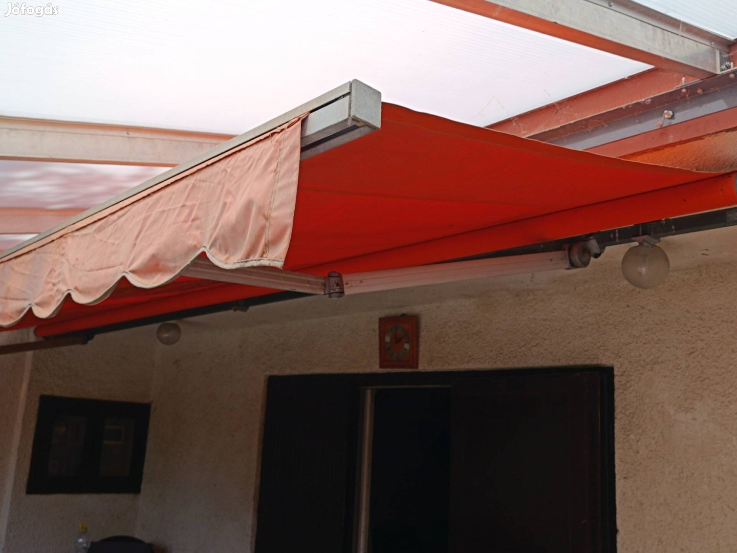 Napellenzo, kitekerhetos. 480 cm széles és 150cm-re lehet kitekerni.