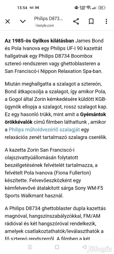 Philips hordozható magnó 1982! Müködik rádió jo aux/phono jo! A kazetta resz itt ott müködik. Szijjak el fáradtak sajna! De egy hozzá ertö simán ki csereli ökett! Nagy tudásu gepezet! Nagyon halk a mechanikája james-bond filmbe is benne volt ez a magnó! Termeszetesen futár mehet meg beszeles szerint!