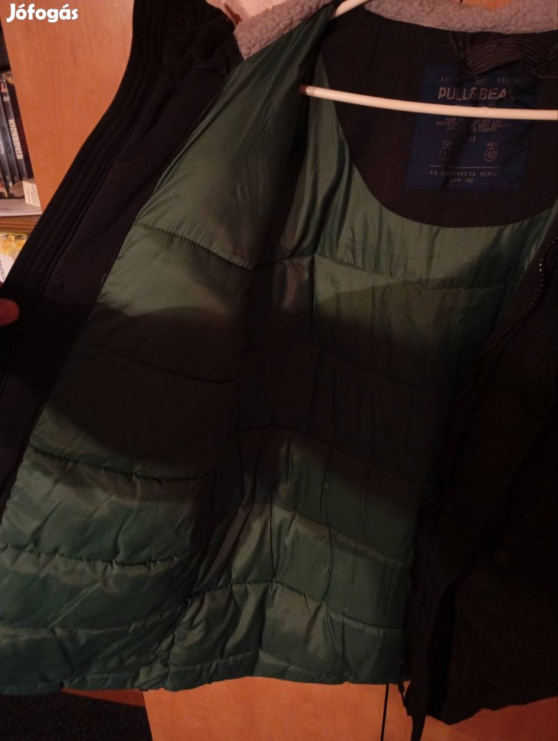 Pull And Bear hosszított fazonú Téli kabát L-méretü méretű levehető szőrme prémel személyesen átvehető Cegléden