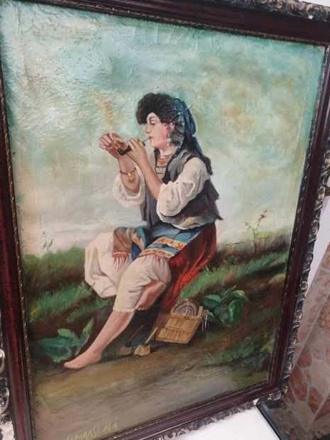 Antik olaj-vászon nyilazó puttó festmény szignós 53X63cm eladó!