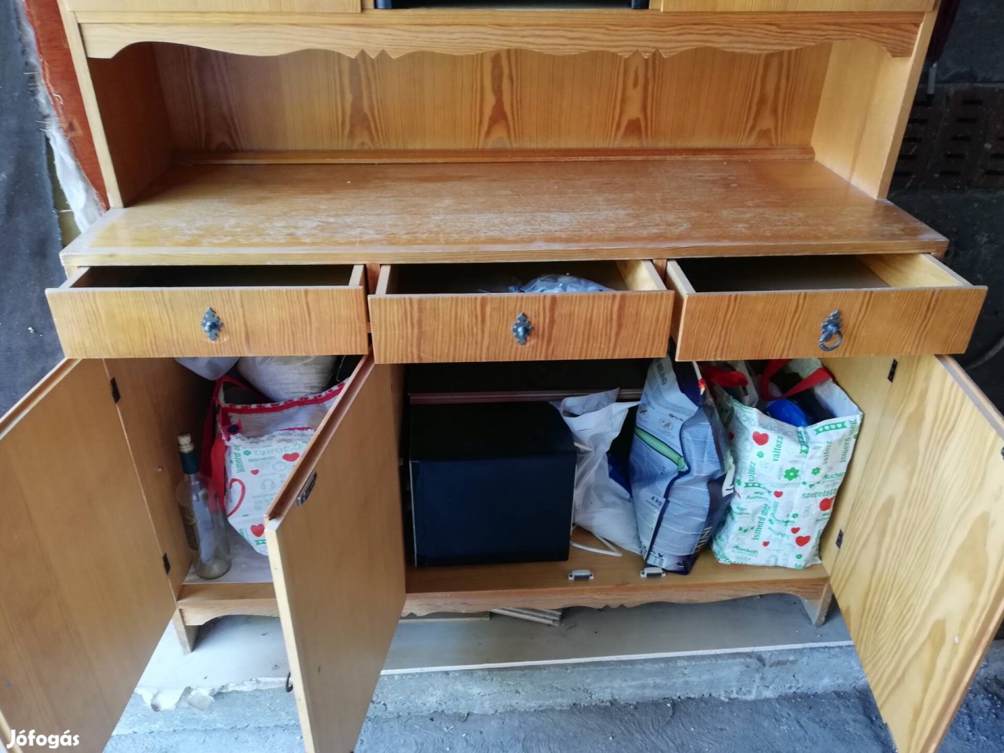 Eladó a képen látható használt tálaló szekrény, karcolások vannak rajta.