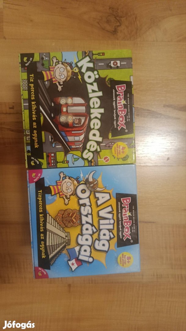 Eladó a népszerű Brainbox sorozat két darabja, a Közlekedés és A világ országai társasjáték. Ezek a pörgős, 10 másodperces memóriajátékok játékos formában fejlesztik a gyerekek figyelmét és bővítik tudásukat az utazás, illetve a földrajz világában. Kiváló állapotú, kompakt fejlesztőjátékok, amelyek akár utazás közben is remek szórakozást nyújtanak az egész családnak.