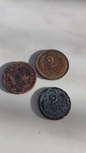 Régi Magyar 2 fillér a 3db egybe 1910-ből
