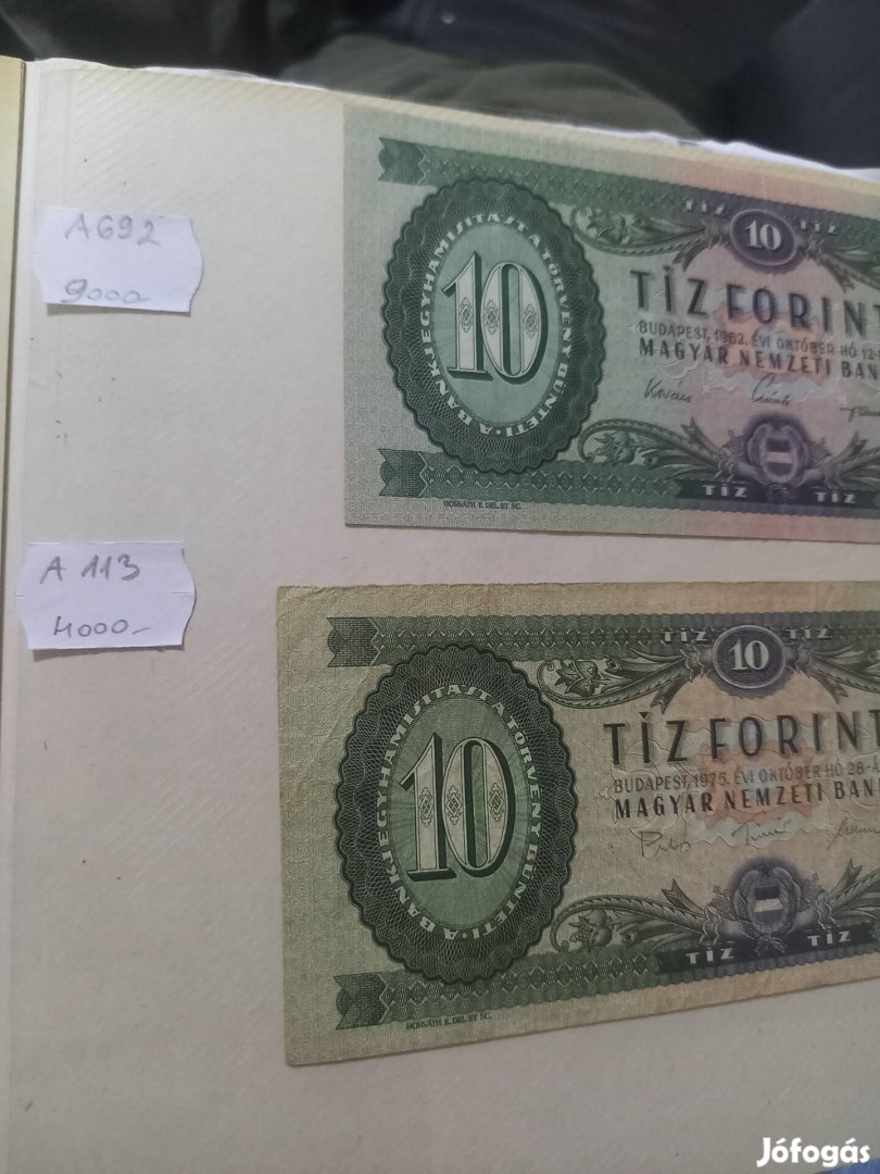 10 ft os papír bankjegy.az árra mellette látható.