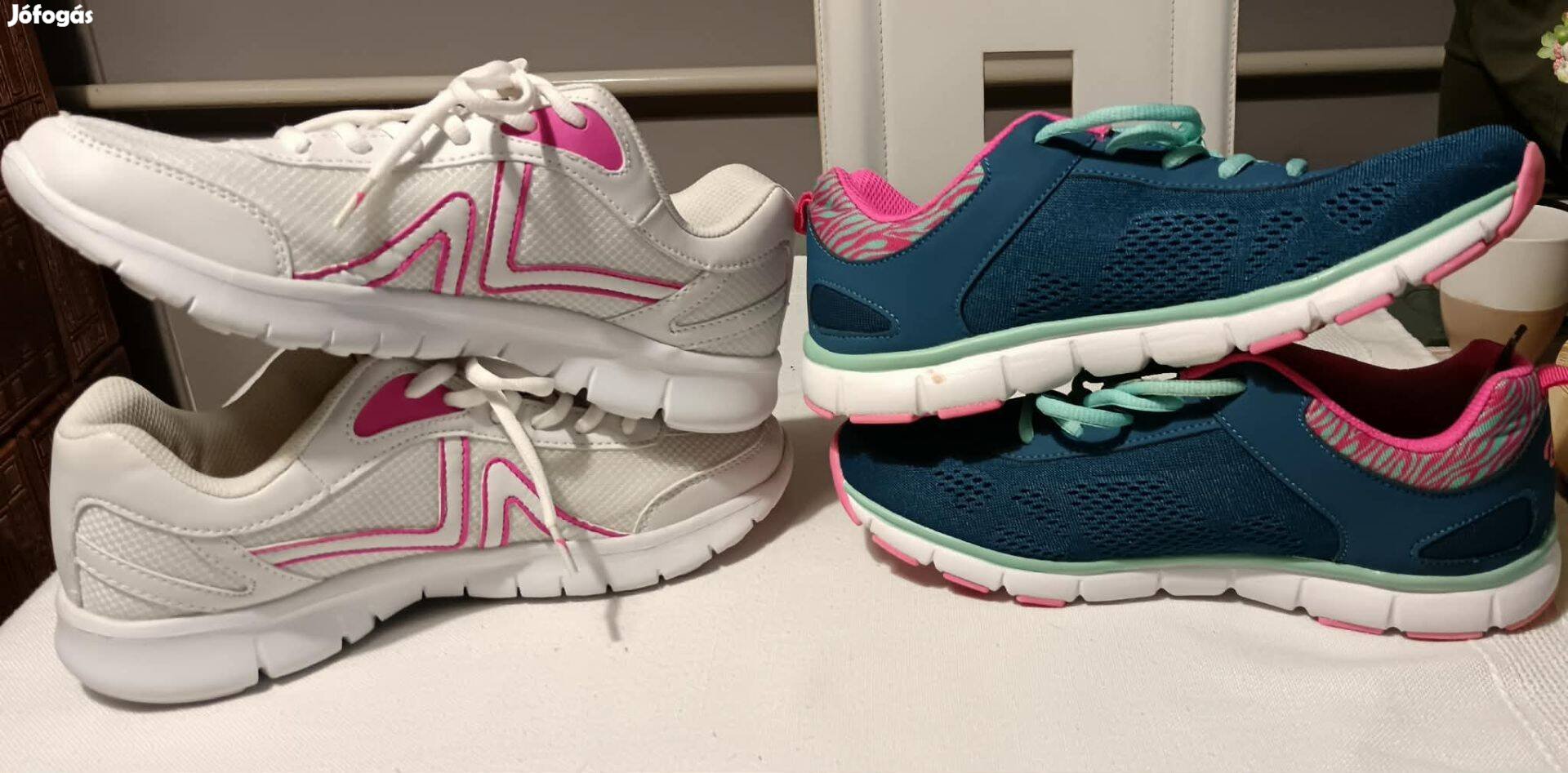 2 pár könnyű női sportcipő. Az egyik F&F active a másik Brütting márkájú. Szép állapotban, keveset használtam, de kisebb kopás előfordulhat. 40-41-es méretüek, a talpbetétek hossza: 26,3-26.5cm.