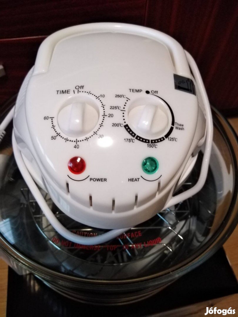 Eladó a képen látható hőlégkeverős sütő kihasználatlanság miatt. Praktikus a sütőtál átláthatósága, mert figyelemmel lehet kísérni a sütés folyamatát.