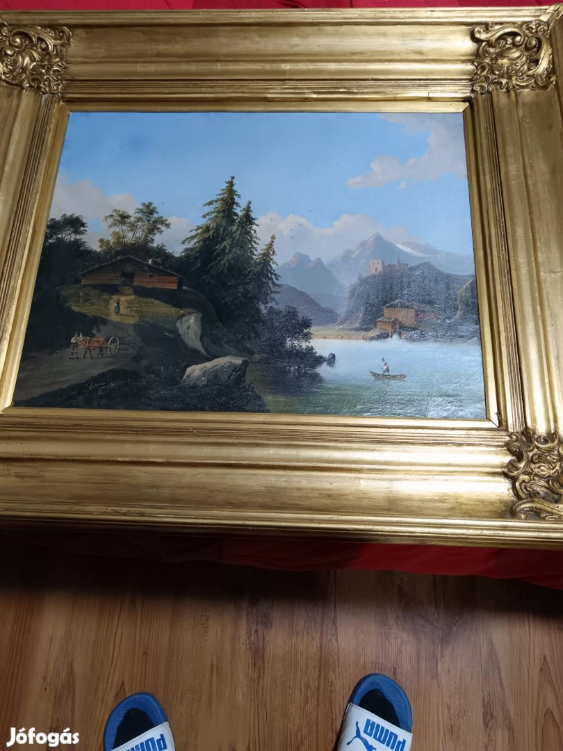18.századi gyönyörű Biedermeier Olaj vászon festmények eladók. Kvalitásos, makulátlan képek. A tájképek Georg Geiger osztrák festő készítette 1850 körül. Szignózott. 100x85 keretezve, ára, 199 ezer