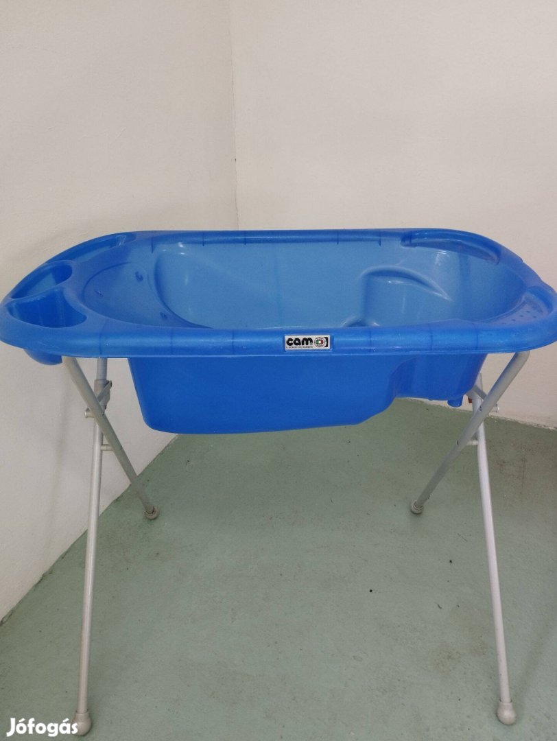 CAM márkájú ergonomikus kialakítású szép átlátszó kék műanyag kád eladó. Összecsukható masszív, stabil fém lábakkal , így kényelmesen fürdethető a baba.A kád mérete 53x95cm, magassága 84cm. Ingyen szivacsos pelenkázót is adok hozzá.