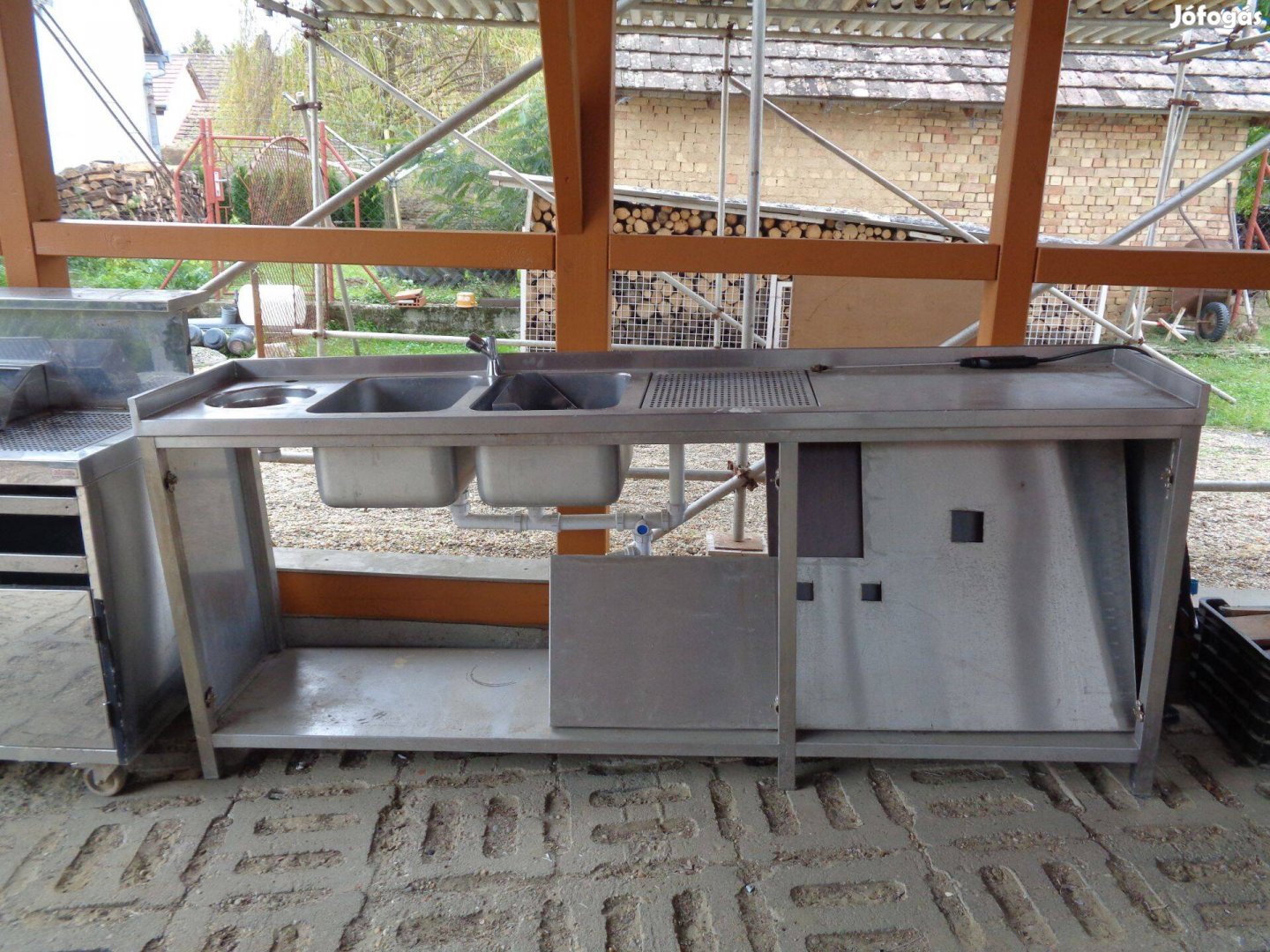 Eladó, rozsdamentes acél, beépíthető mosogató pult. Méretei; 225 x 50 x 90(100) cm. Szállítás megoldható. Helyileg Balatonberényben van. Telefon 30-2470800.