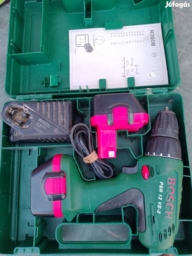 Bosch 12V fúró csavarozó 2db új, utángyártott akksival, töltő+ koffer.