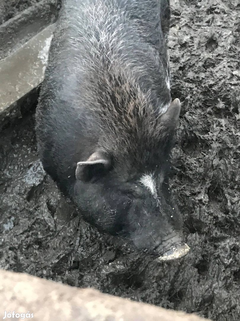 Eladó ivaros, csüngőhasú jellegű kan disznó.
