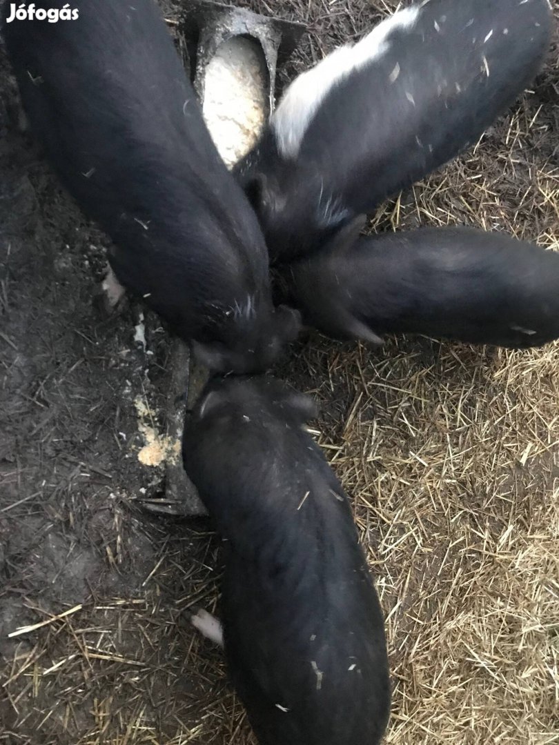 Eladó 4 db szelíd csüngőhasú fiú malac, 6 hónaposak,ivarosak. Ár: 12 ezer forint/db