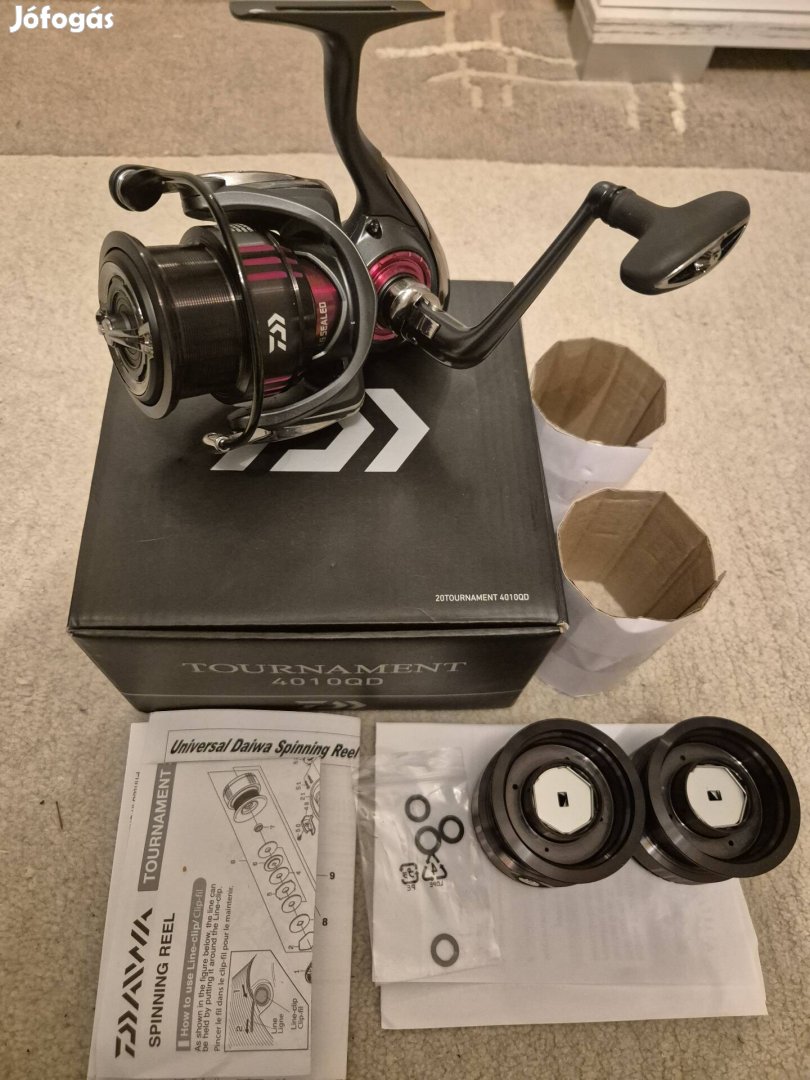 Eladó a képeken látható új,garanciális Daiwa Tournament 4010QD feeder orsó gyári tartozékaival és számlával.
