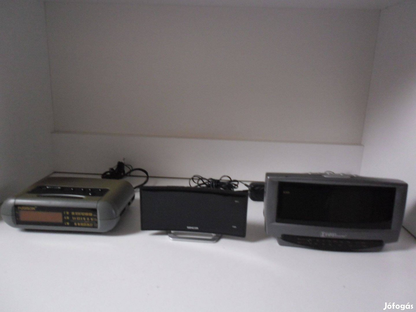 Eladó 3db digitális rádiós ébresztőóra, kihasználatlanság miatt. Mindegyik frissen szervizelve és tesztelve, szép esztétikai állaptban. A feketeszínű "Sencor" névre hallgató készülék teljesen vadi új, én szedtem le az előlapról a fóliát. Nem volt használva, talán egy fél órát. Ő nem tartalmaz rádiót. A másik kettő viszont rádiós, a nevük: " Fugison" ill. "Fiast" . Mindegyik hálózatról és telepről egyaránt működik. A készülékeket egyben hirdetem, külön nem szeretném. Komoly érdeklődés esetén telefonos egyeztetés szükséges!