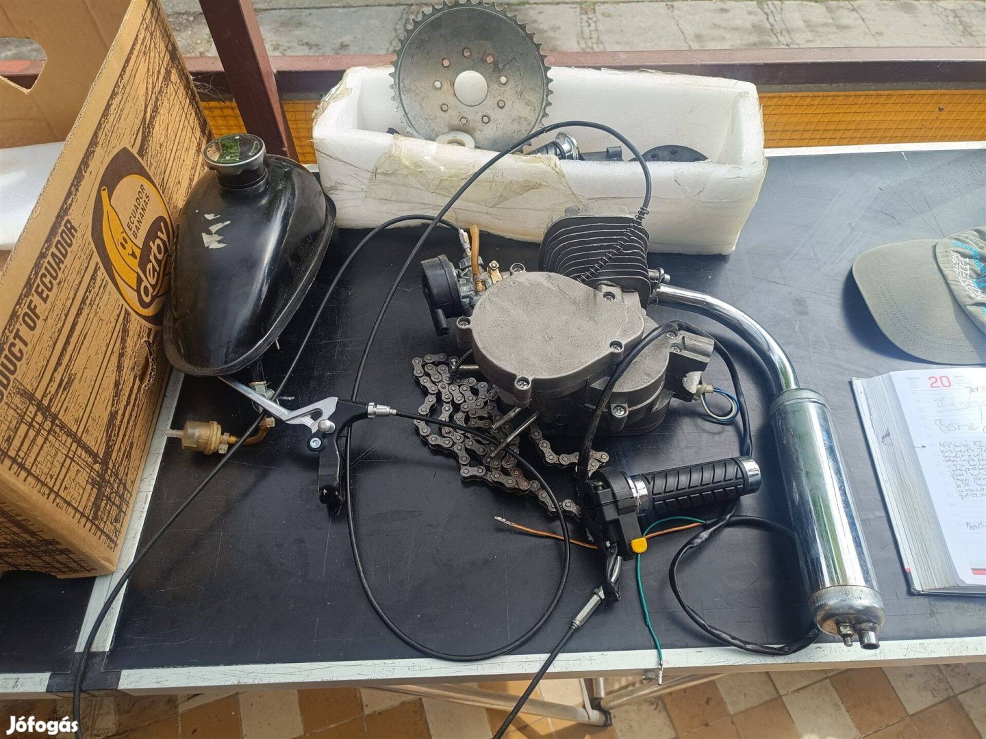 Jó állapotban, kínai gyártmány, 35 cm3, nem volt bekötve, egy kerékpárról szedtem le. Csak tesztelve volt, nincs benne km, kifogástalanul működik. Minden alkatrész, motor, karbi, lánkerék, vezető, markolatok, gáz-kuplung csövek, üzemanyag tartály. 40-es keverékkel megy. Kérdésre szívesen válaszolok, nézd meg a többi hirdetésemet is!