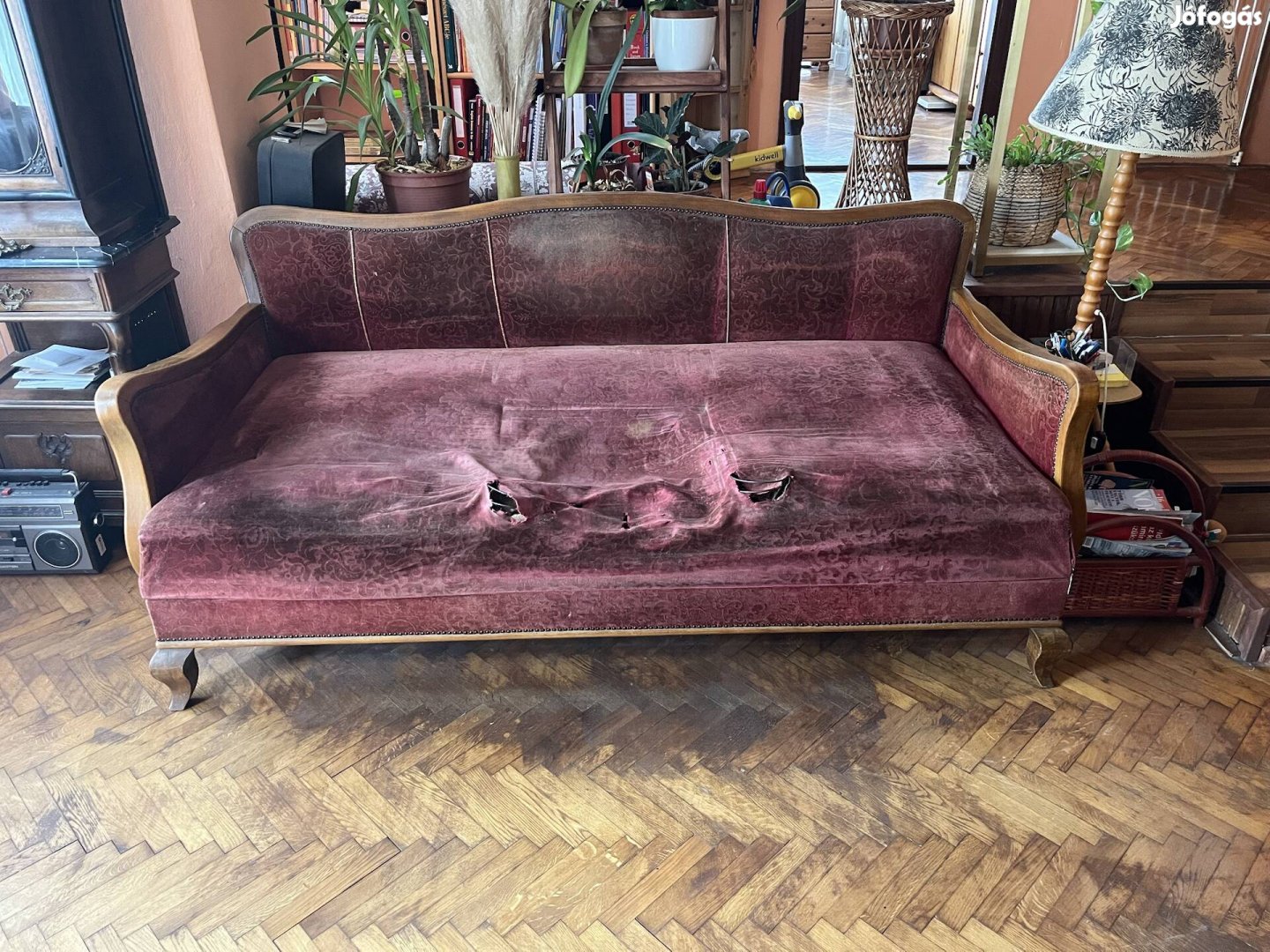 Eladó a képeken látható egyedi készítésű epedarugós kanapé, amely felújítást igényel. Kb 210cm széles, 95-100cm mély, átlagosnál nagyobb méretű. Szennán megtekinthető és személyesen vihető.