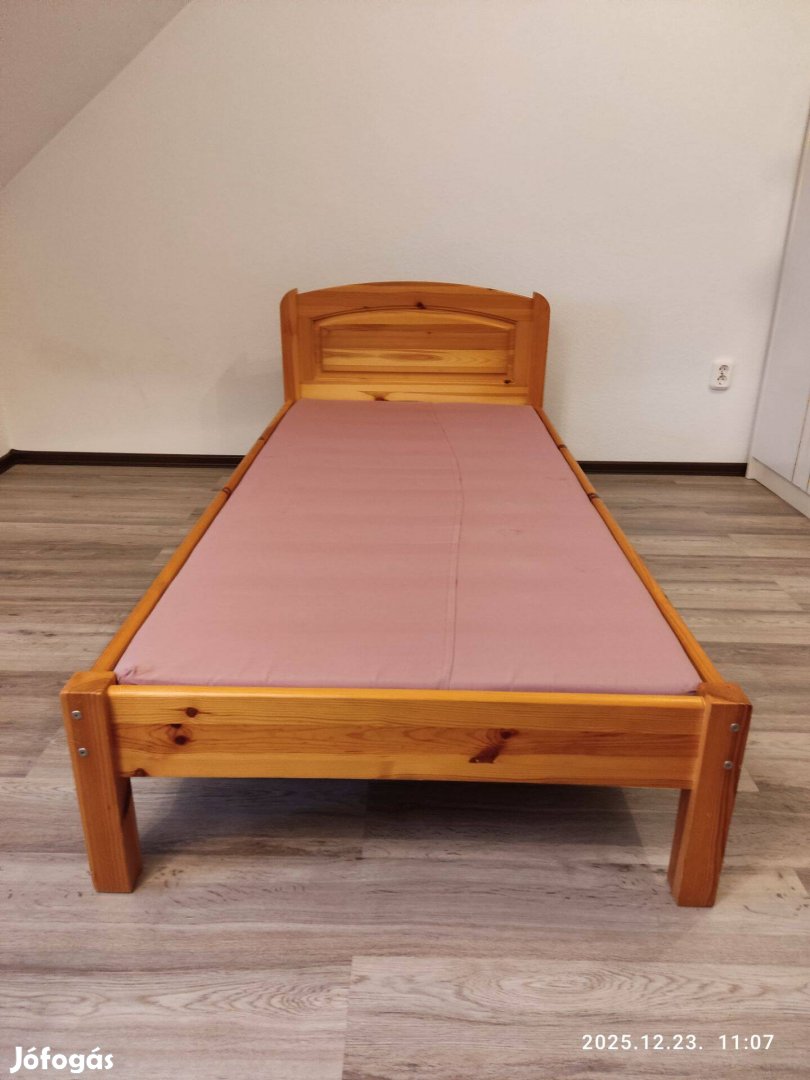 Eladó jó állapotú fenyő egyszemélyes ágy, normál szivacsmatraccal.