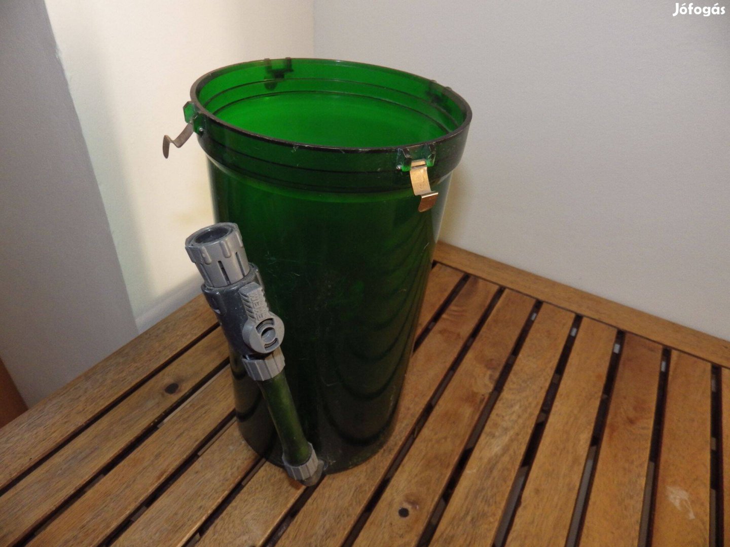 Tartály épp, csattokkal kifolyópipával és csappal.