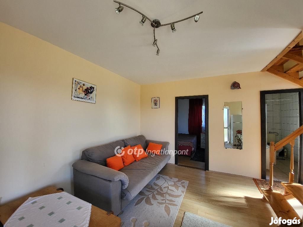 Somogy megyében, Siófok Szabadifürdőn, 78,5 m2 ház, 624 m2 telek eladó. Az ingatlan kertvárosias lakóterületen helyezkedik el csendes, nyugodt környezetben, gyalog mindössze 15 percre a Galérius Fürdőtől és az Aranyparttól. A két szintes, 66,5 m2-es lakóterületet hatalmas terasz és erkély egészíti ki, ahonnan kellemes panoráma nyílik az almásra és a távoli városrészekre. Villany, víz, csatorna bekötve, gáz az utcában. A terület két külön helyrajzi számon nyilvántartott részből áll, egy 568 m2-es építési telekből (14 m széles, 40 m hosszú) és egy 56 m2-es magánútrészből. Az építési telek 30%-os mértékig beépíthető, a legnagyobb megengedett építménymagasság 5 m. A könnyűszerkezetes, szigetelt ingatlan értékét növeli két cseresznyefa, valamint két mobil garázs (2,5x7 m és 3x5 m). Állandó lakhatásra és nyaralásra is alkalmas, valamint befektetésre is ideális. Bővebb információért keressen telefonon!