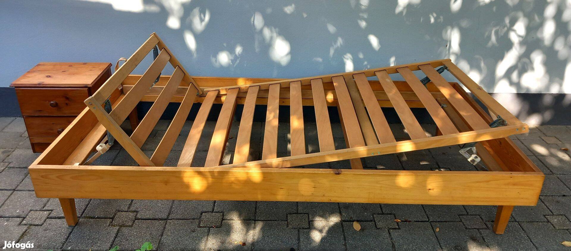 Eladó Fenyő ágykeret állítható ágyráccsal, éjjeli szekrényel 100x200cm