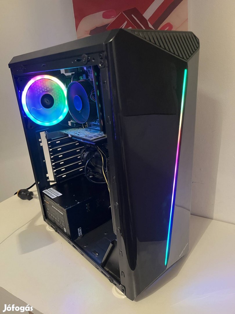 Modern, látványos kialakítású gépház, edzett üveg oldallappal és RGB világítással.
