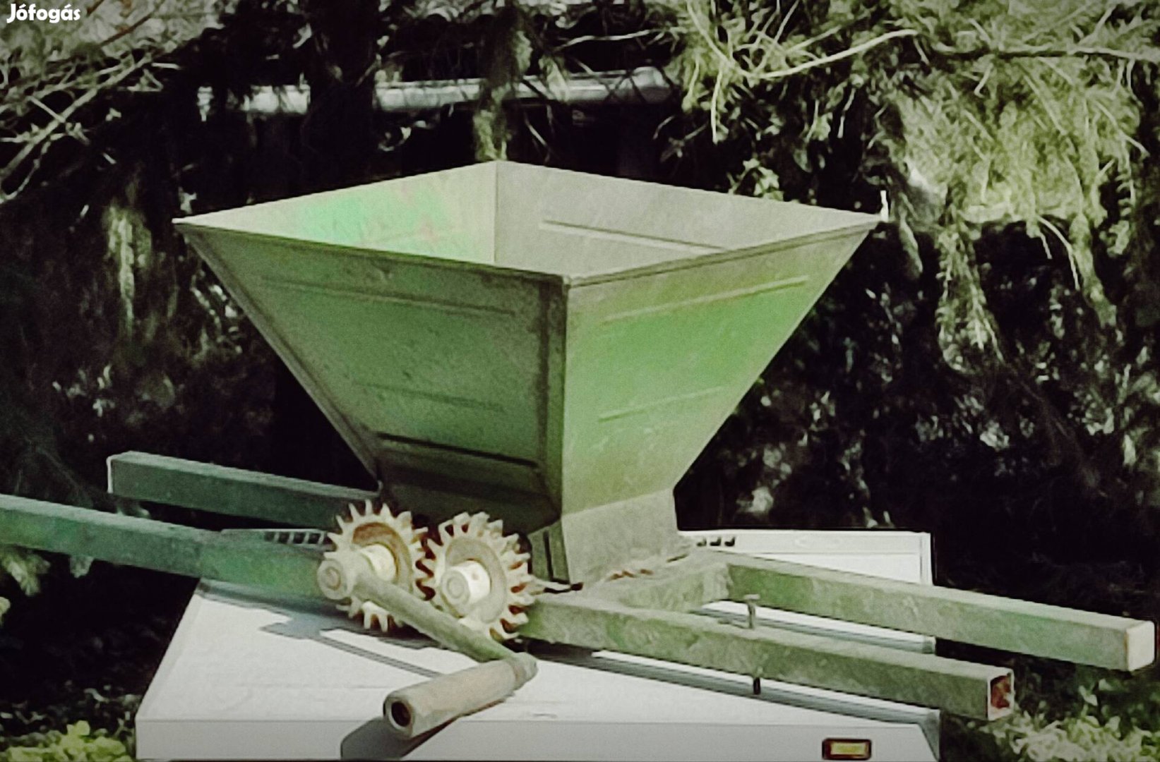 Eladó jó állapotú S-O szőlőzúzó, kisebb borászati vagy otthoni szőlőfeldolgozáshoz ideális. Masszív, tartós szerkezet, könnyen használható és tisztítható. Kézi hajtású, megbízható daráló, amely hatékonyan zúzza a szőlőt préselés előtt.