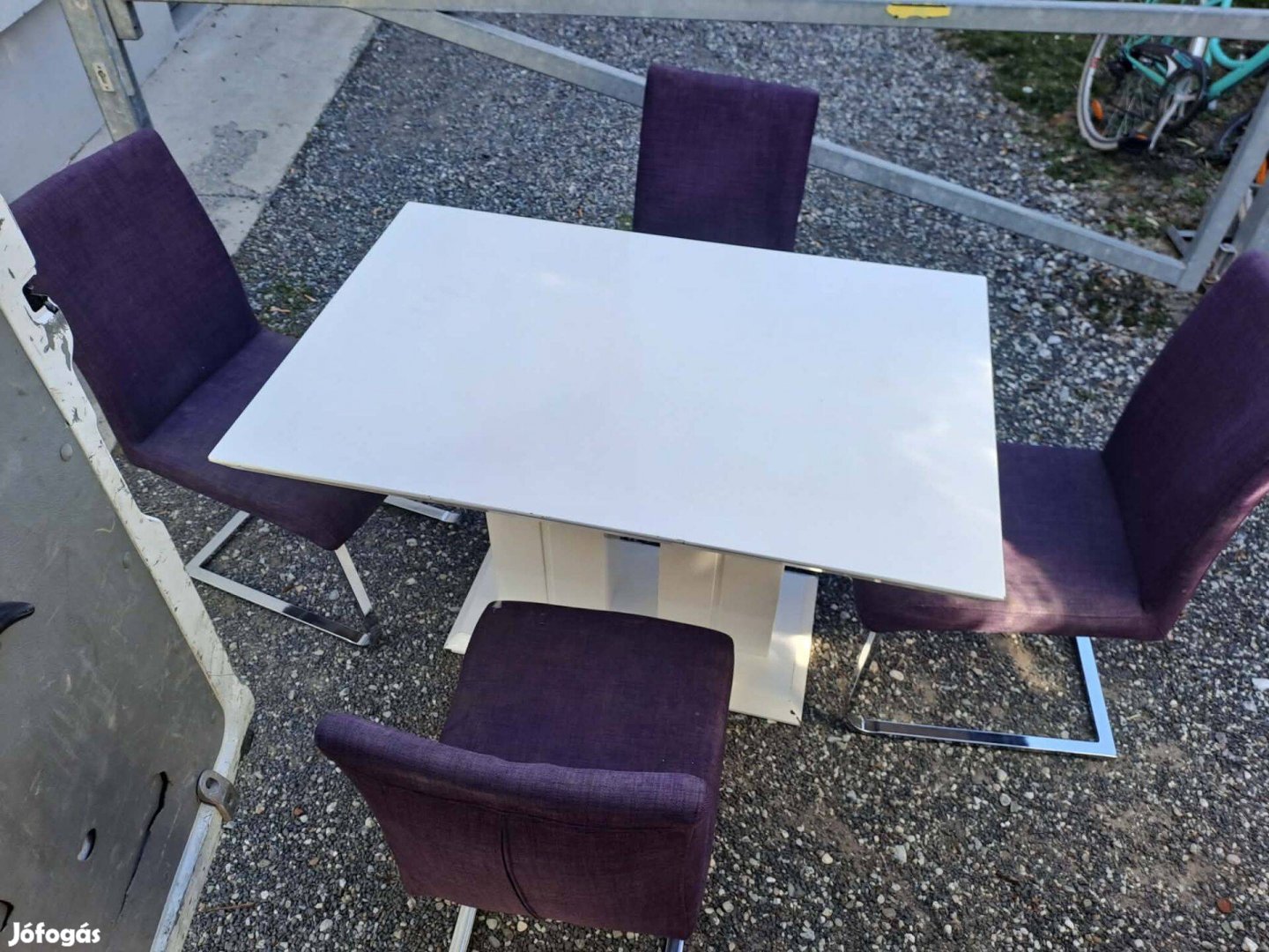 Eladó egy Étkező garnitúra . Asztal+4 db szánkó talpas szék , melyeken mosható, levehető húzat van.