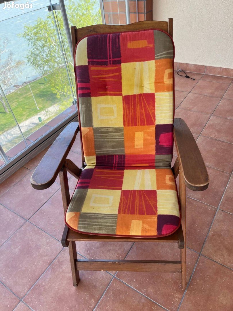 Eladásra kínálunk egy megkímélt, fából készült kerti garnitúrát, ami áll egy ovális összecsukható asztalból, 4 állítható támlás székből, egy napozó ágyból és egy kis lábtartóból.