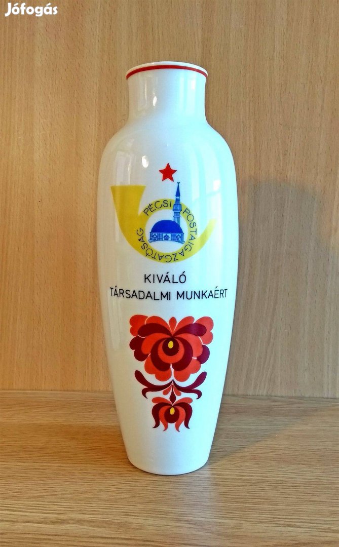Egyedi alkalomra - Kiváló Társadalmi Munkáért - a Pécsi Postaigazgatóság megrendelésére készült Hollóházi porcelán váza hibátlan állapotban eladó.