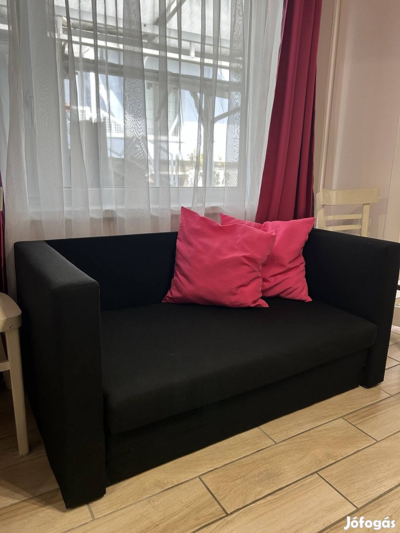 Eladó egy praktikus, fekete 2 személyes kanapé, amely kihúzható, így pótágyként is használható.