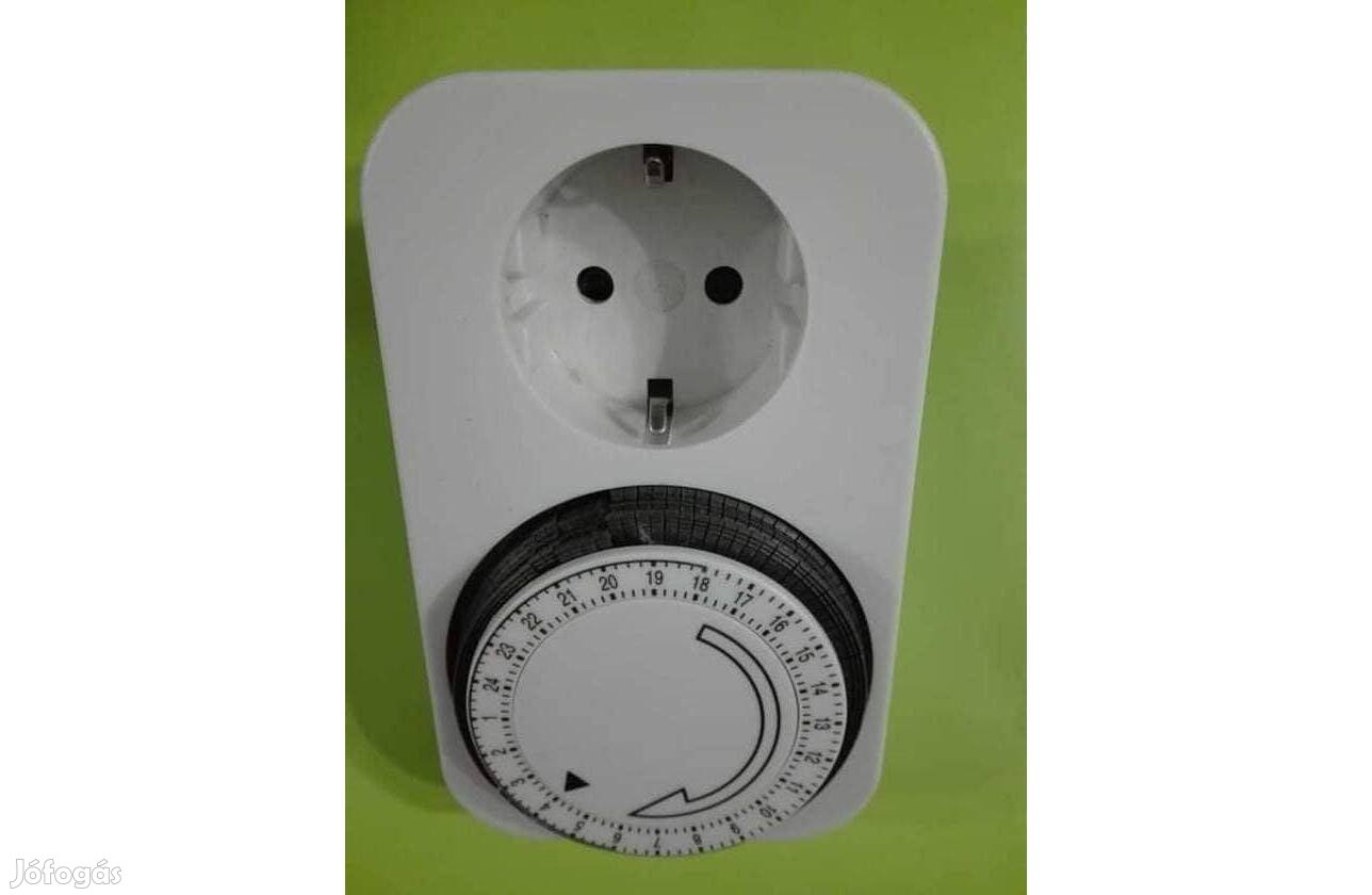 Mechanikus kapcsolókonnektor 24 órás ciklussal. A beállítható minimális időszak 15 perc. Bekapcsolható fázisvezető.