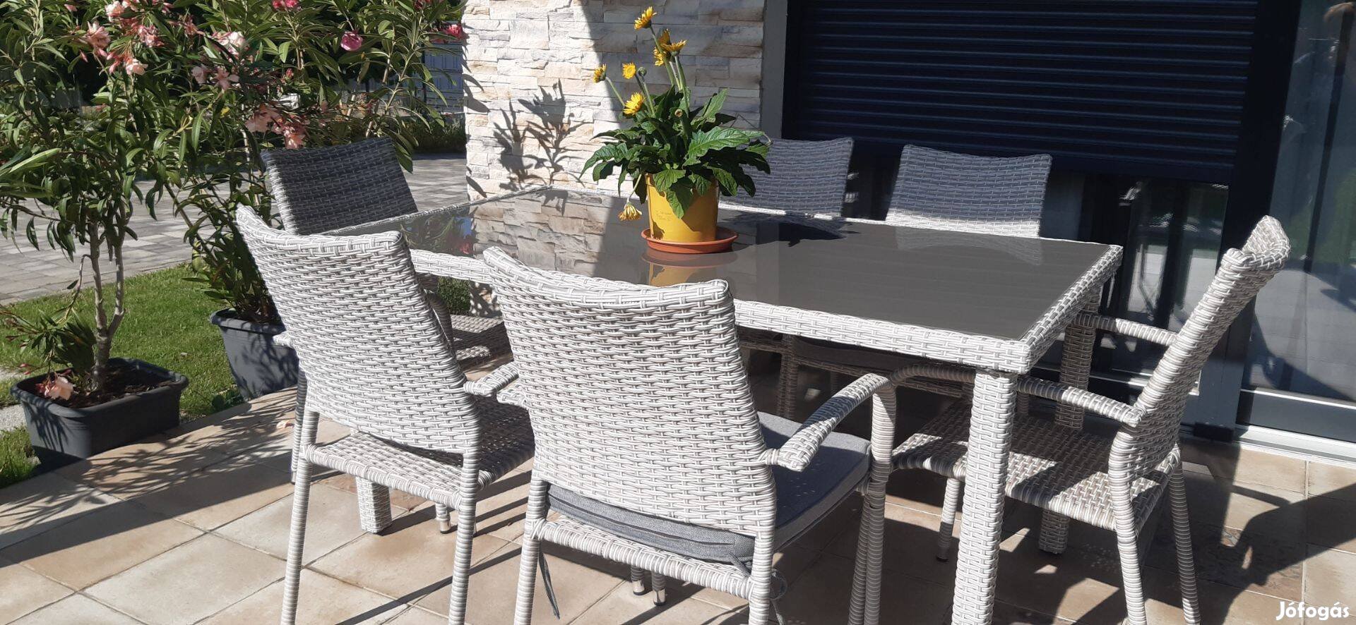 Helyhiány miatt, féláron eladó egy 6 személyes, keveset használt, fémvázas polyrattan étkezőgarnitúra Kaposváron.