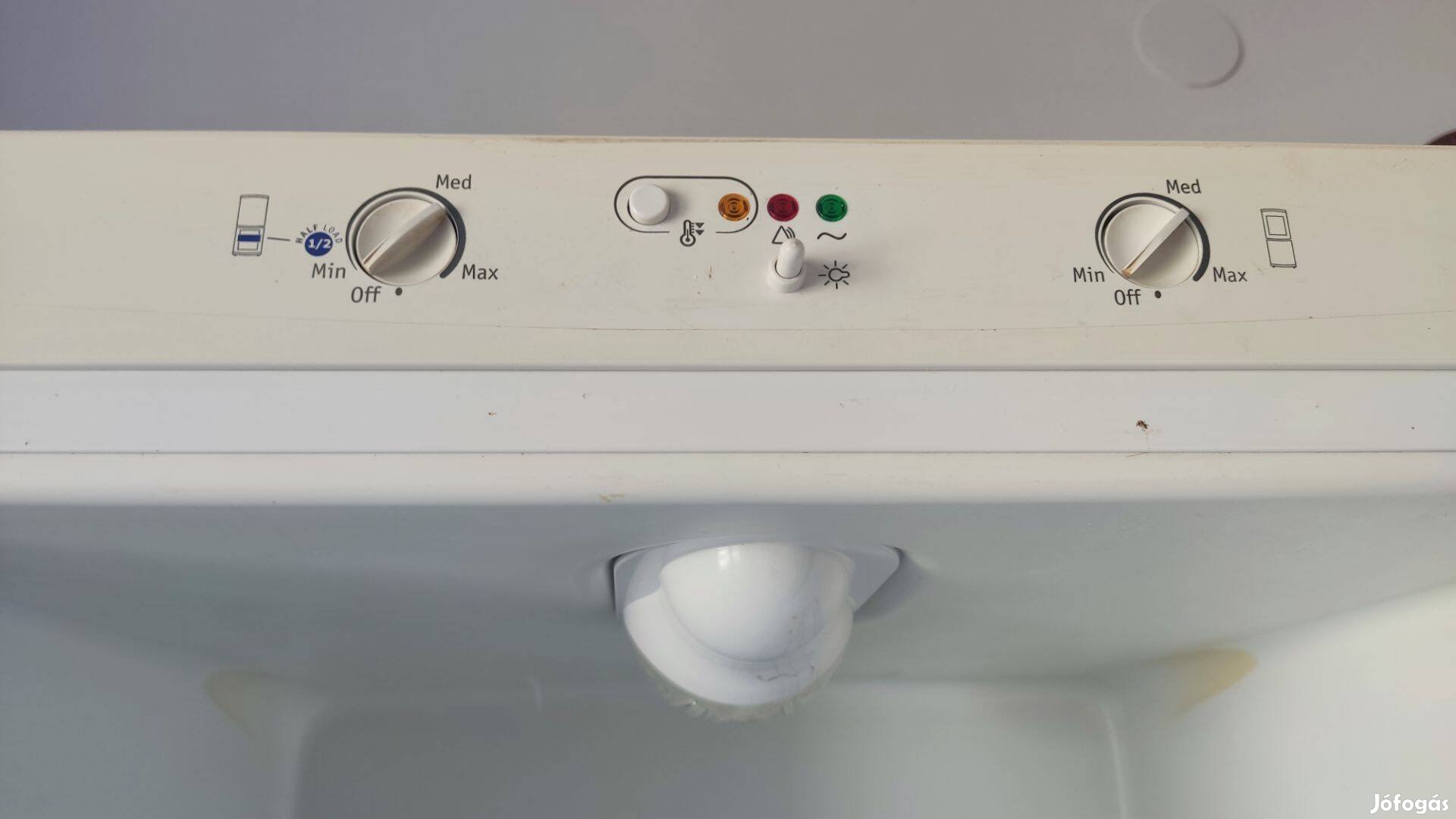 A hűtőszekrény fagyasztó ajtaja kívül rozsdafoltos, egyébként rendben működik. Két kompresszoros típus, külön hőszabályozható, üzemeltethető a hűtő és fagyasztó rész is.