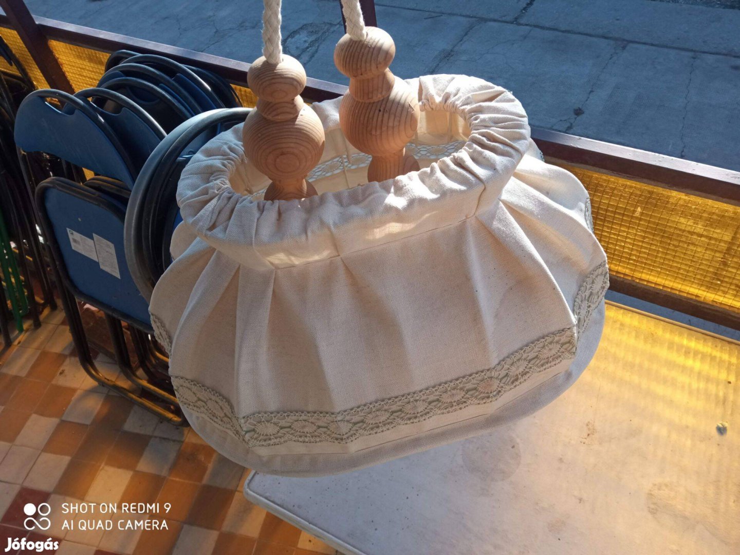 Jó állapotban, tökéletesen működik. Landhaus stílus, szép lámpabúra szövetből teraszra, étkezőbe, stb.