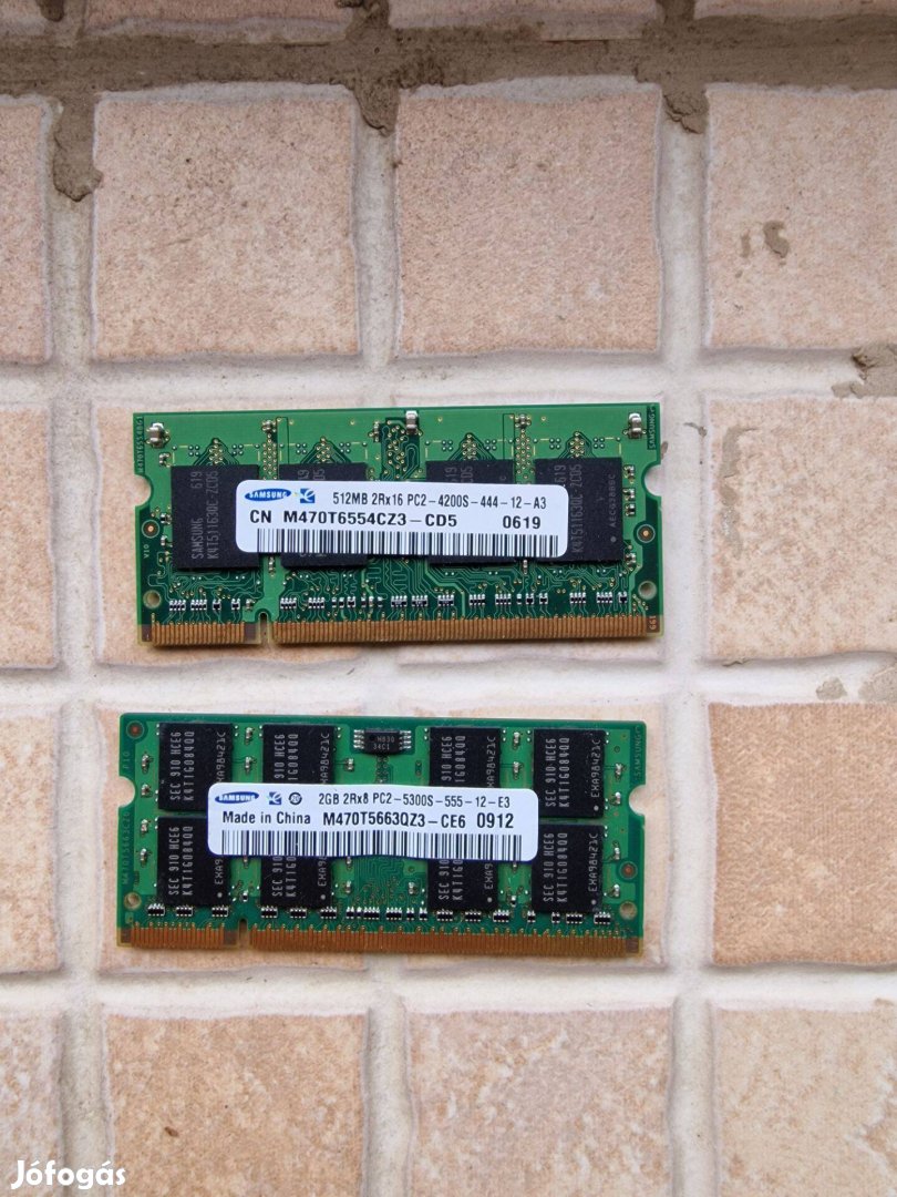 Eladásra kínálok 1 db 2GB memóriát illetve 1 db 512MB memóriát Laptopba.