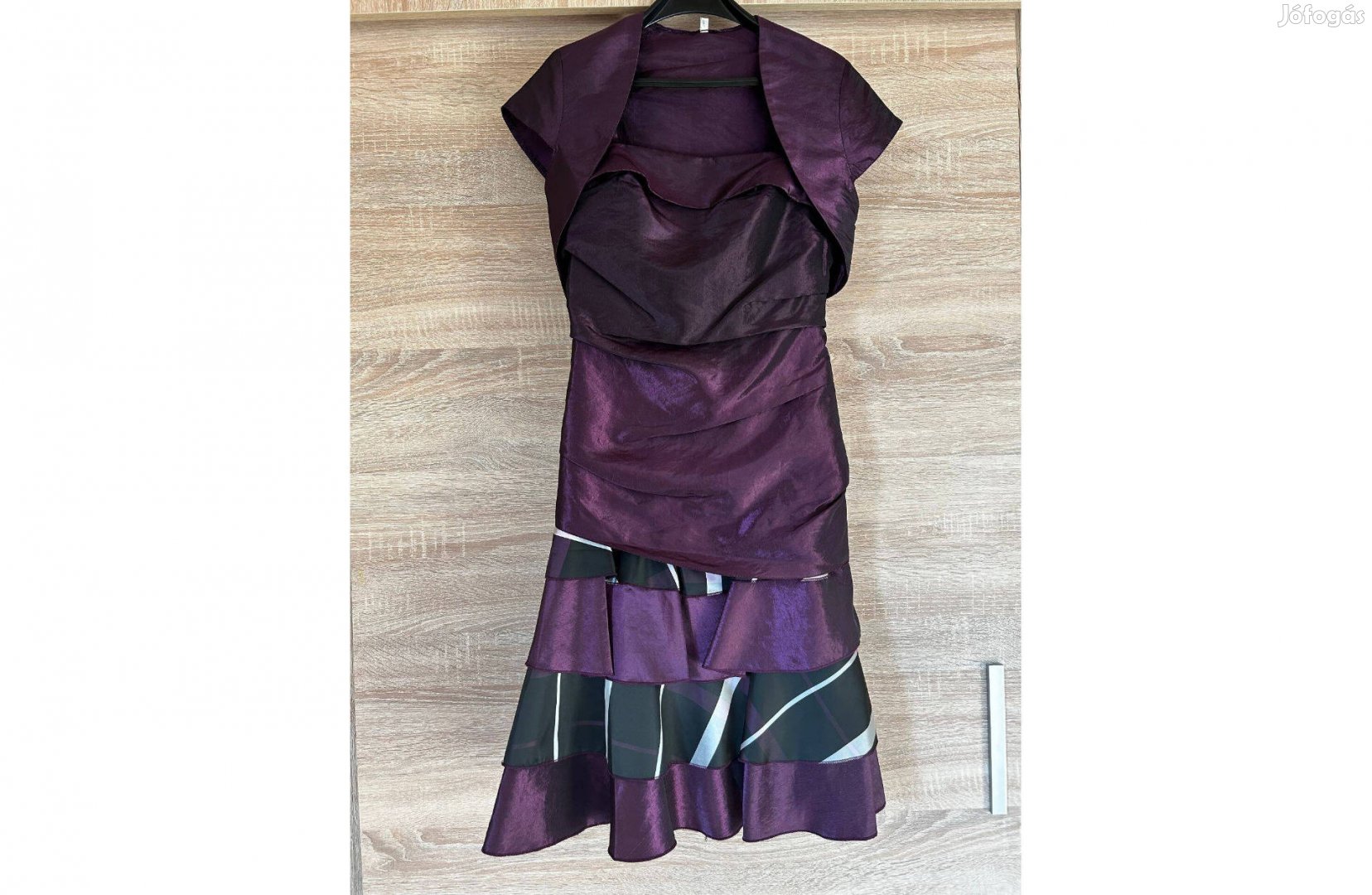 Eladó egyszer viselt alkalmi ruha boleróval. Pontos méret a képeken látható. Személyes átvétel Fonyód-Balatonboglár környékén vagy előre utalás után csomagküldéssel.