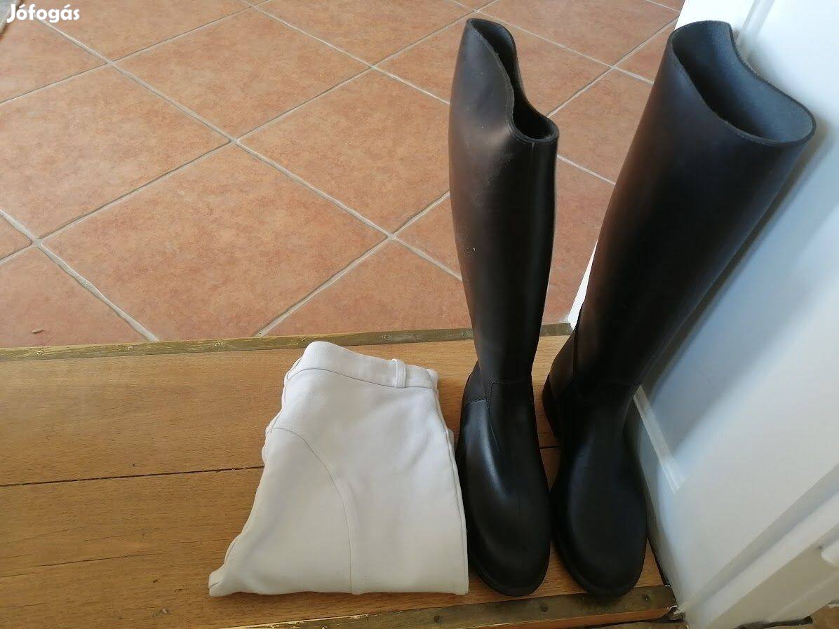 Eladó a képen látható Decatlanos Fouganza márkájú vízhatlan lovaglócsizma és lovaglónadrág egy szettben. A csizma mérete: 38-as a nadrág 12-13A méretű 158 cm magasságú vékony gyermek viselte. Az ár a szettre vonatkozik.