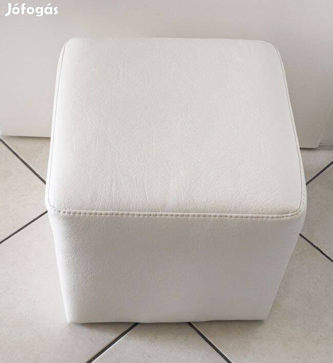 Fehér, strapabíró rendkívül masszív fehér színű textilbőr bevonatú kocka puff eladó. Lábtartónak is kiválóan alkalmas a felső része puha szivacs.