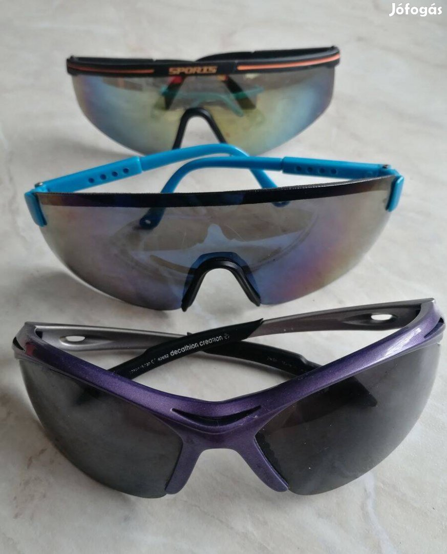 3db. sport napszemüveg. A lencsék nem polarizáltak, a harmadikon kevés használatból adódó karc, képeken látható.