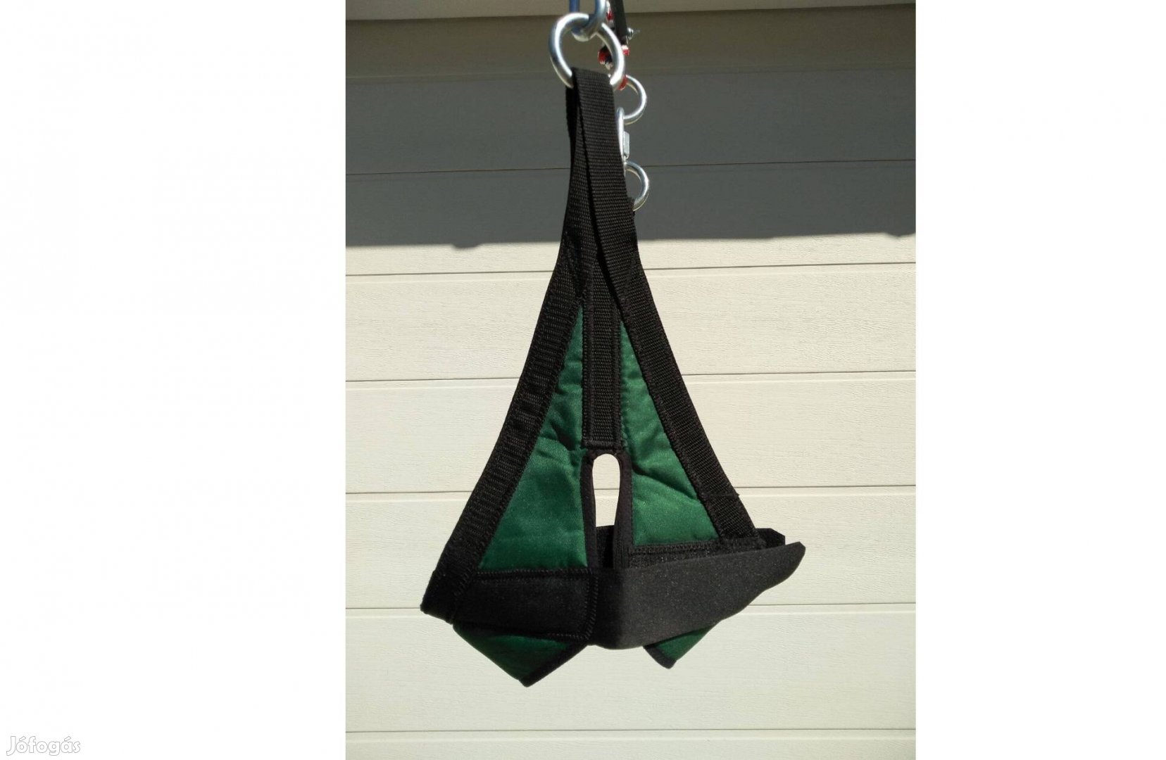 Tépőzáras, nagy teherbírású heveder nyak nyújtásához, mely egy vagy két ponton is felfüggeszthető. Használható felfüggesztve, vagy lecsatolható manuális nyújtáshoz is. Teherbírása minimum 110-120 kg. Minden fej és nyakmérethez alkalmas. Egyedi darab, nem sorozattermék.
