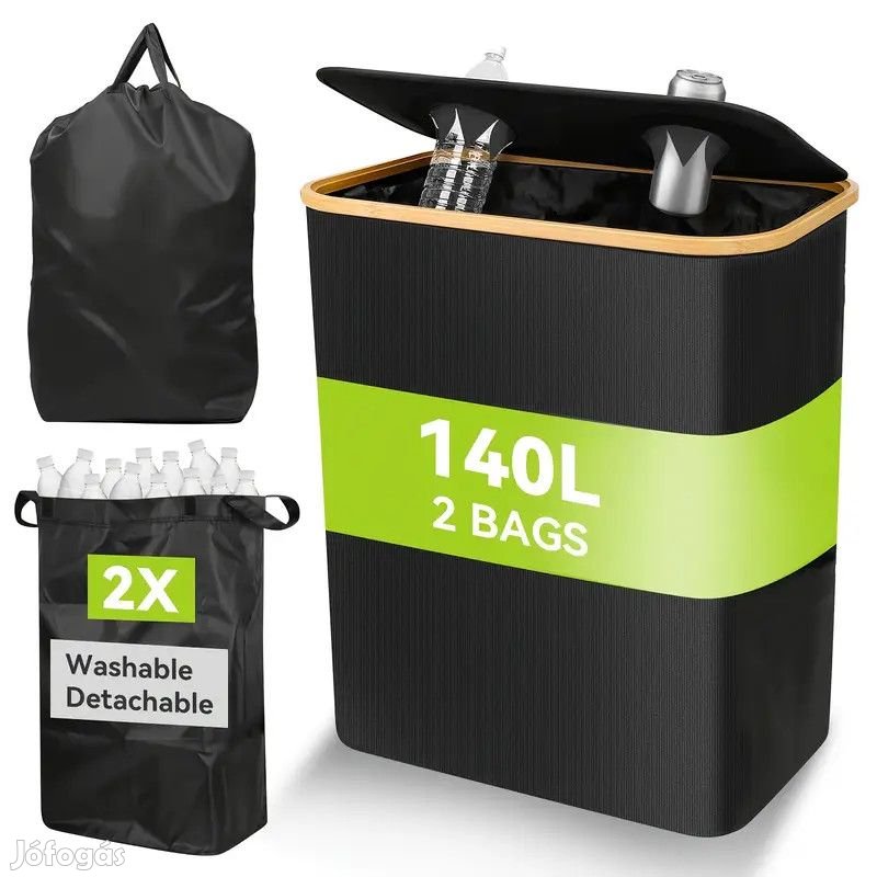 Összecsukható, dupla konyhai PET palack gyűjtő 140l-es, 2db kivehető füles hordozózsákkal.