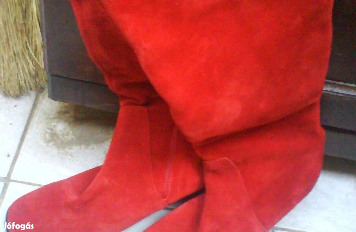 Spanyol velúr tömbsarkú csizma .Talphossz 27cm sarok magasság 6cm szárhossz 35cm szélesség bokánál 14cm térdnél 19cm