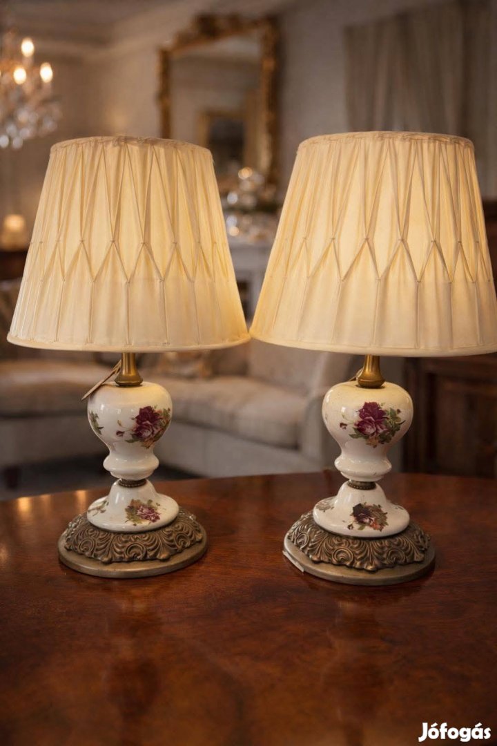 Különleges, romantikus hangulatot árasztó porcelán talpú lámpapár, finom virágmintával és díszes, klasszikus talprésszel.