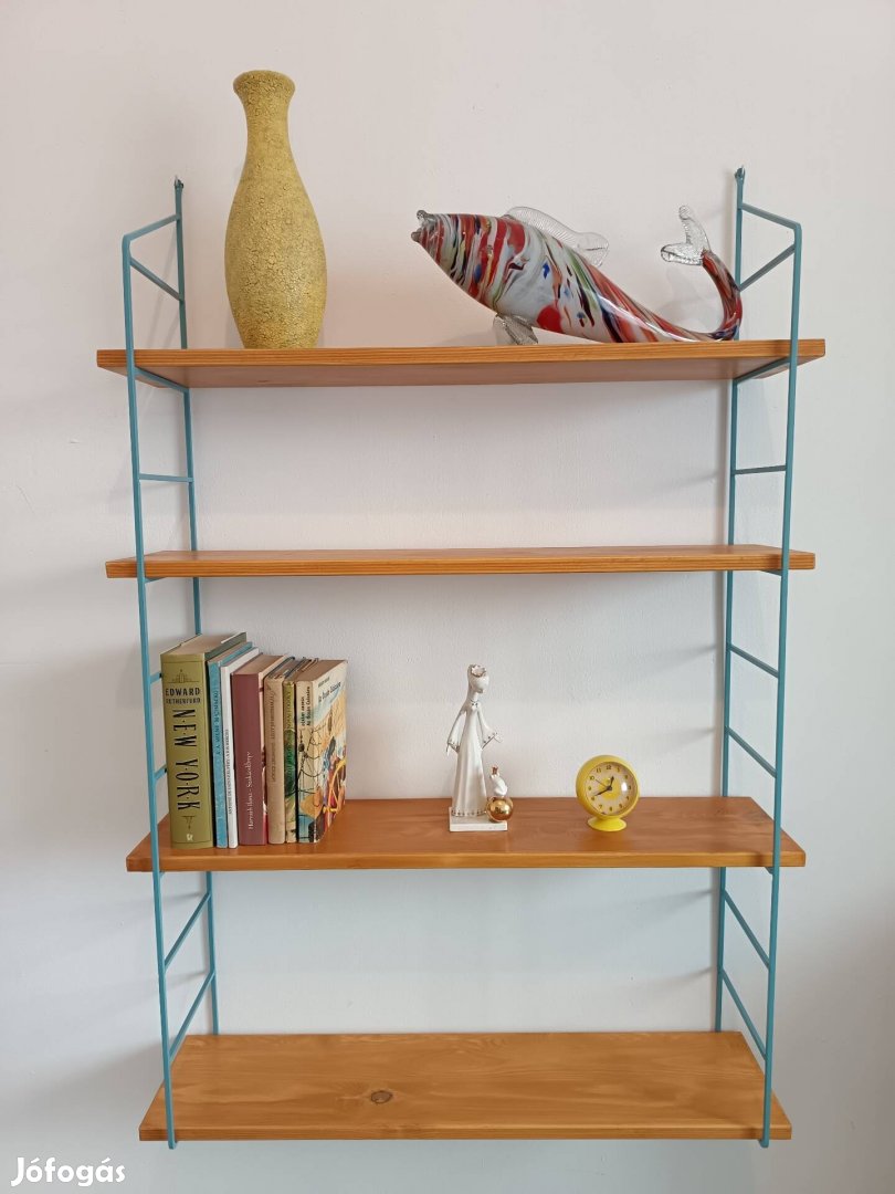 Eladó a képeken látható, felújított retró polcrendszer, fa polcokkal!