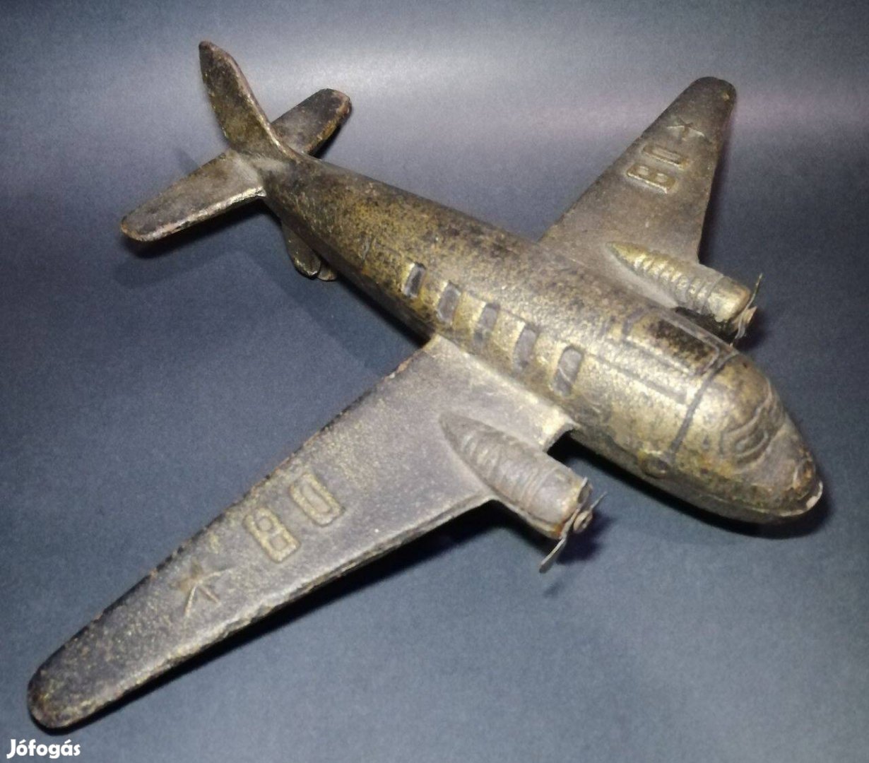 Különleges, maszív öntöttvas repülőmodell a szocialista időkből. Kb. 1,2kg. Mérete és állapota látszik a képeken.
