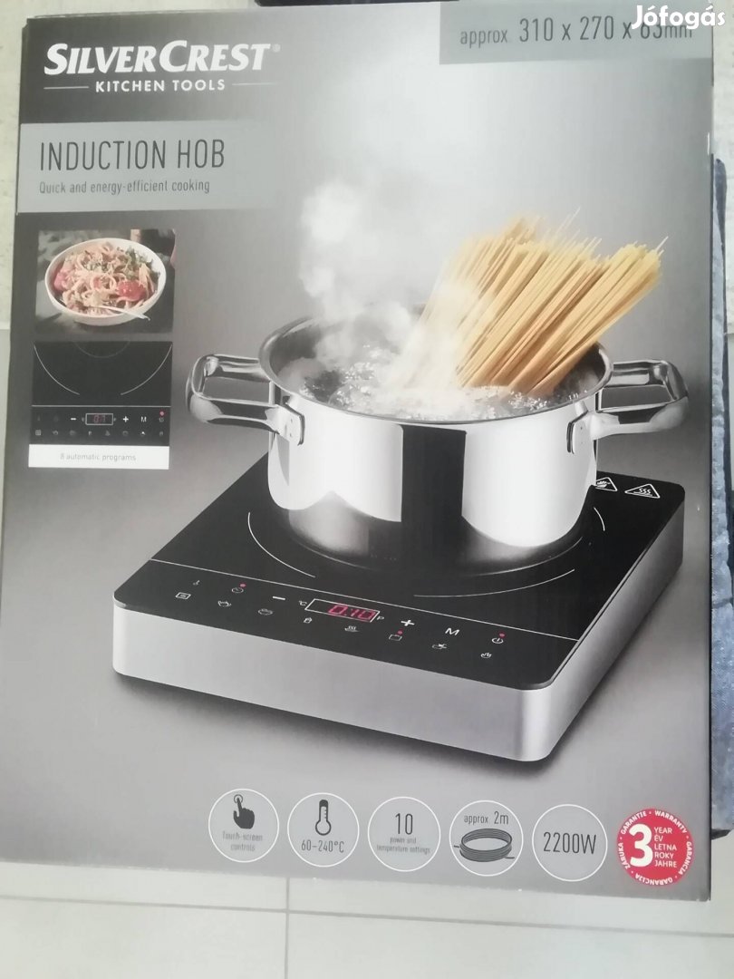 Silvercrest egylapos indukciós főzőlap. Nem használt. Egyszer volt kipróbálva, hogy teljesen rendben működik-e. A nyugtát nem tudjuk már odaadni, mert kb. 3 éve lett vásárolva. Kettőt vettünk egyszerre, de még mindig teljesen rendben működik az első is, amit elkezdtünk használni, ezért ez feleslegessé vált.
