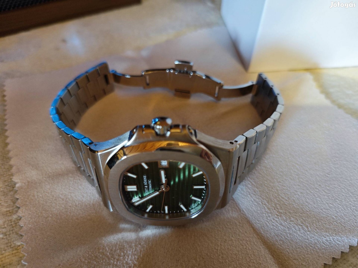 Eladó egy Specht & Söhne 5711 homage automata karóra.Új állapotban, csak felpróbálva volt. Japan 8215 miyotával szerelt, zöld számlappal. Pót szíj szemek, szereléshez eszköz, párna és kendő tartozékok. Posta vevő terhére.