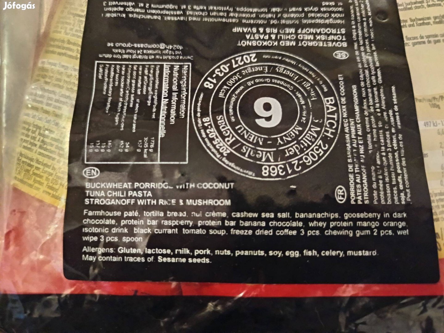 Svéd katonai MRE csomagok, melegítő tasakkal.