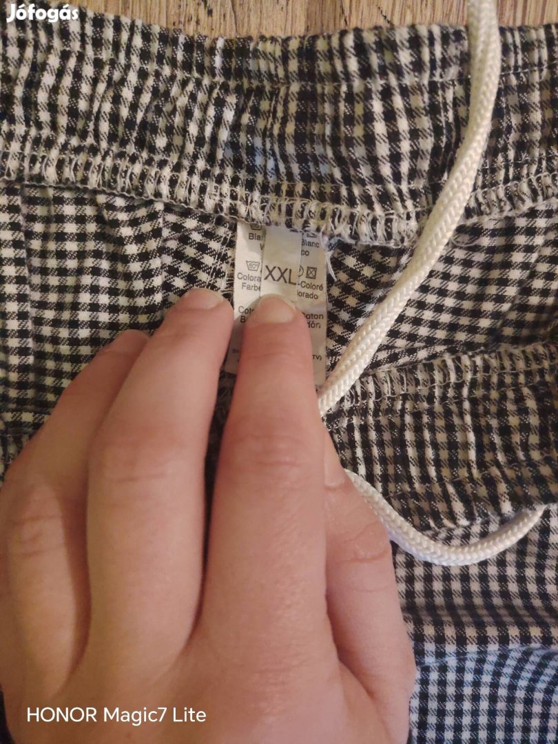 Eladó egy női szakács nadrág XXL méretben, klasszikus fekete-fehér kockás mintával.