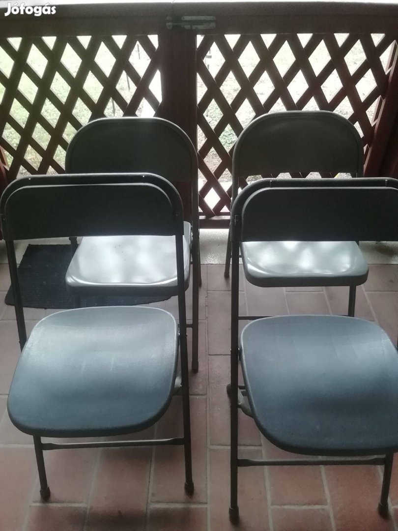 Összecsukható szék 4 db, 2 db szék fém, 2 db műanyag az ülőke és a háttámla, fém a váza. Jó állapotban eladó.